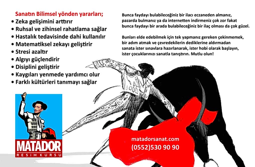 Matador Resim Kursu Milli Eğitim Bakanlığına bağlı resmi olarak belirlenen standartların kalitesinde hizmet veren bir kurumdur.